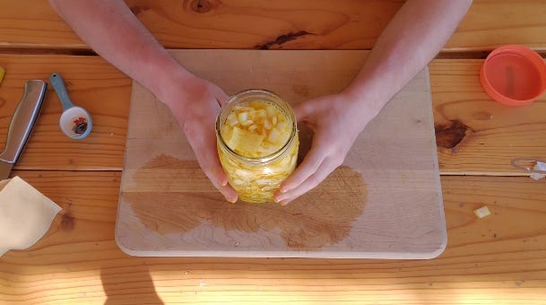 - Fill a quart jar with your onion mix, tamping lightly as you fill. Keep filling until about 2 inches from the jar lip.